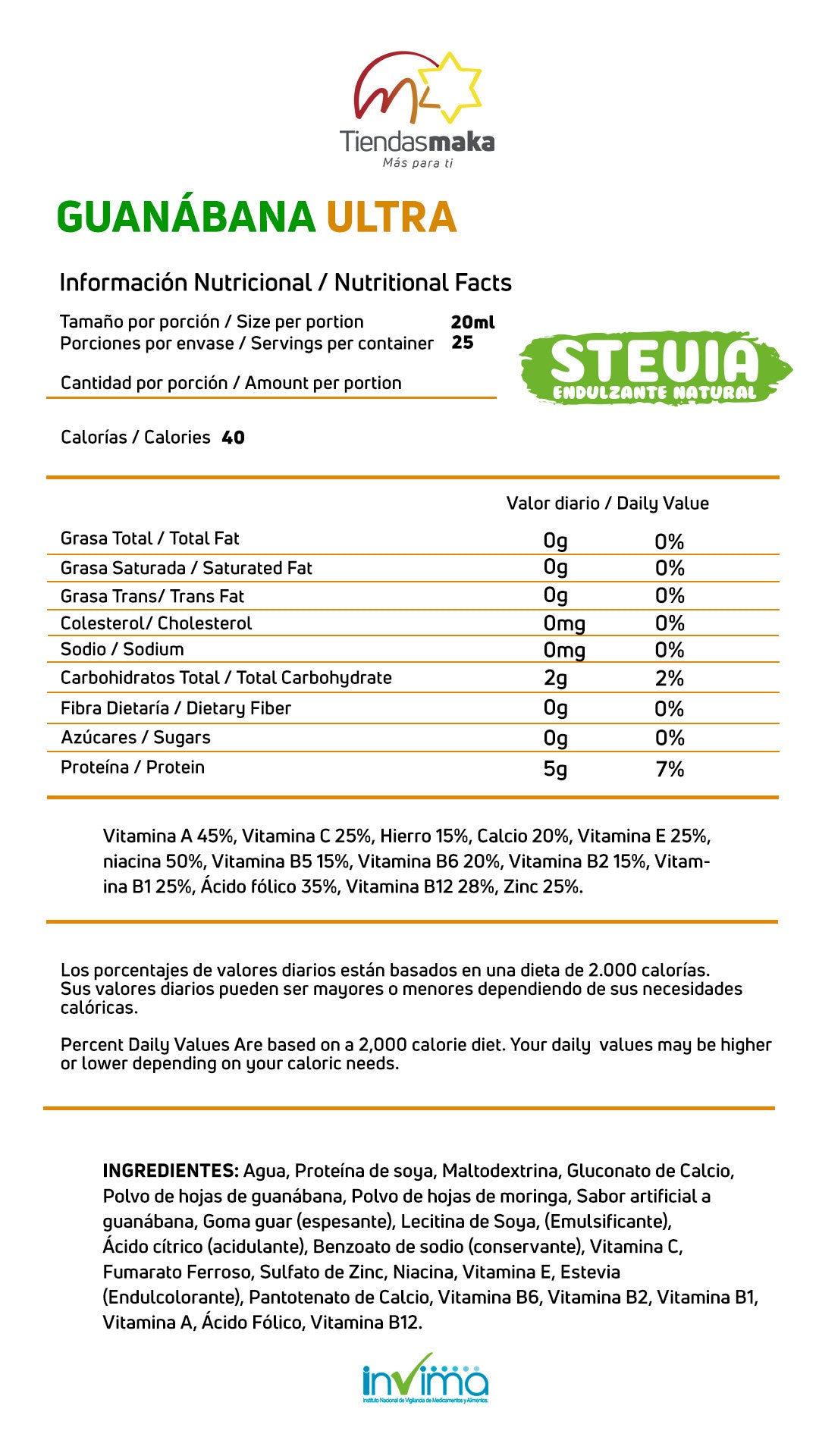 GuanabanaUltra™ es un suplemento concentrado con ingredientes funcionales como moringa y proteína de soya, diseñado para mejorar la inmunidad, la digestión y el bienestar general, no solo como bebida.
