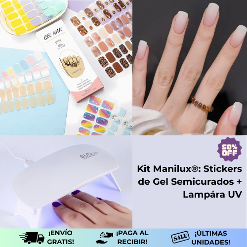 Kit Manilux® | 20 Stickers de Gel Semicurados + Lampára UV ¡50% Off!