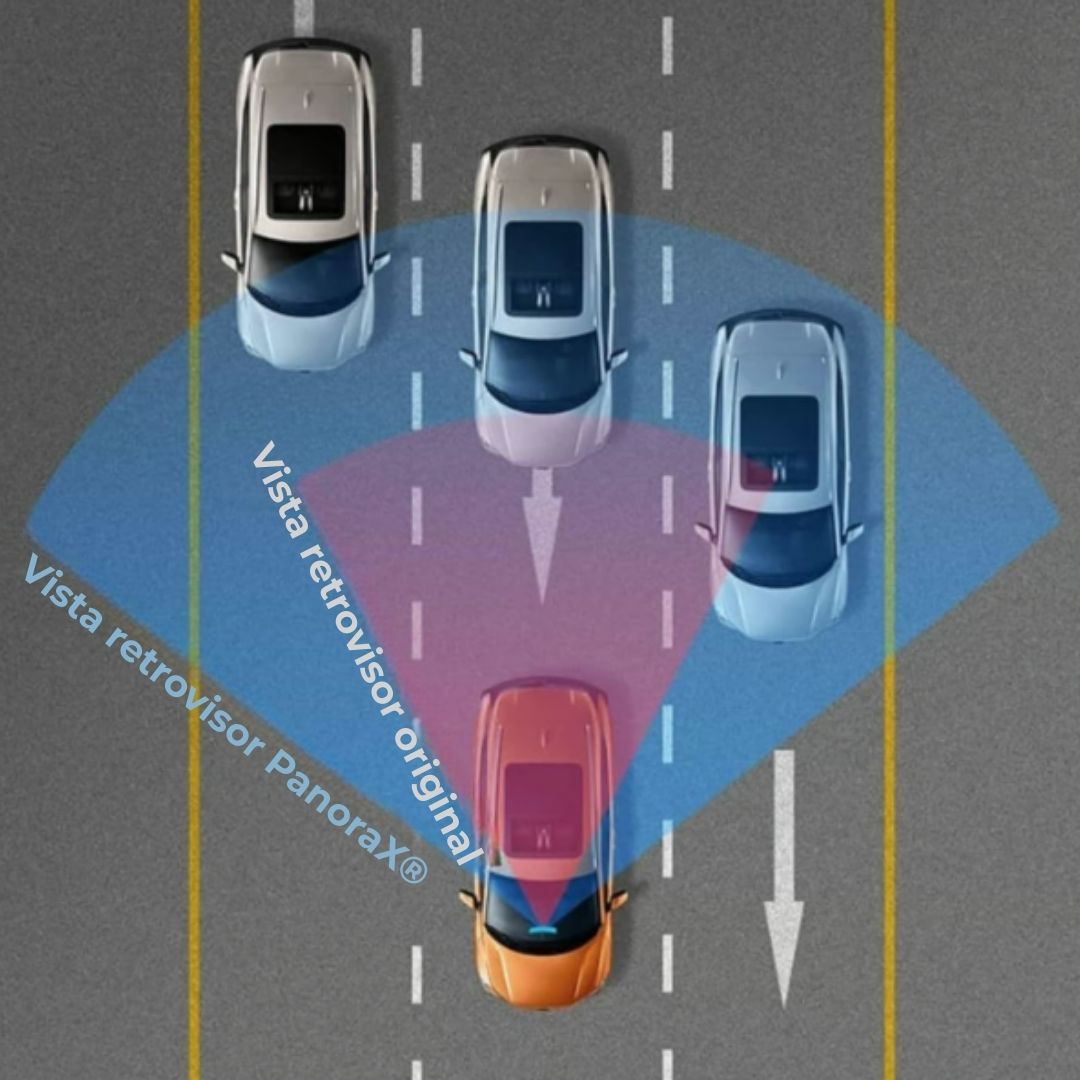Con PanoraX®, de un solo vistazo podrás ver puntos ciegos, motos que se acercan, autos que intentan adelantarte e incluso ver lo que sucede en los asientos traseros sin distraerte.